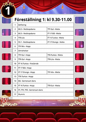Se bilder ovan för att se tider och vilka grupper som deltar på vilken uppvisning.
