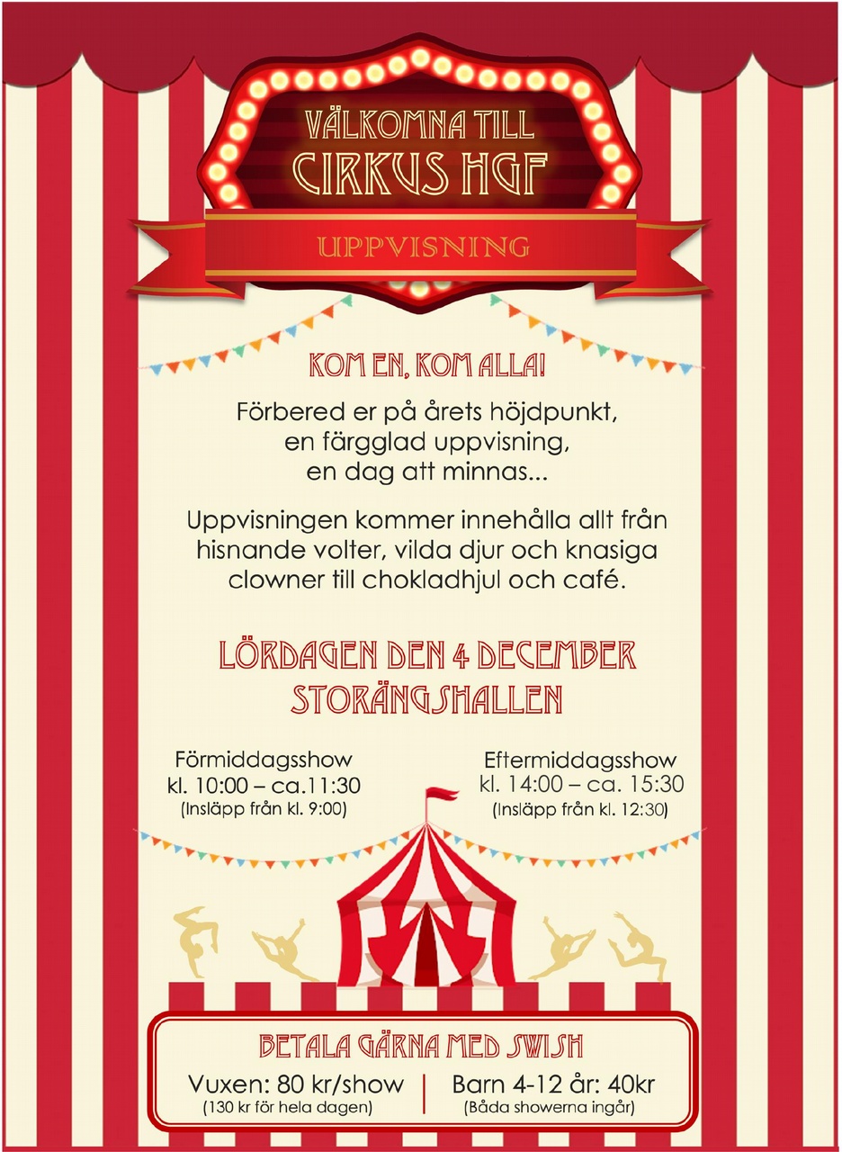 OBS! Med anledning av logisktiken kring vaccinationsbevis har cirkusföreställning 2 en ny starttid: kl 14.00 (insläpp från kl 12.30)