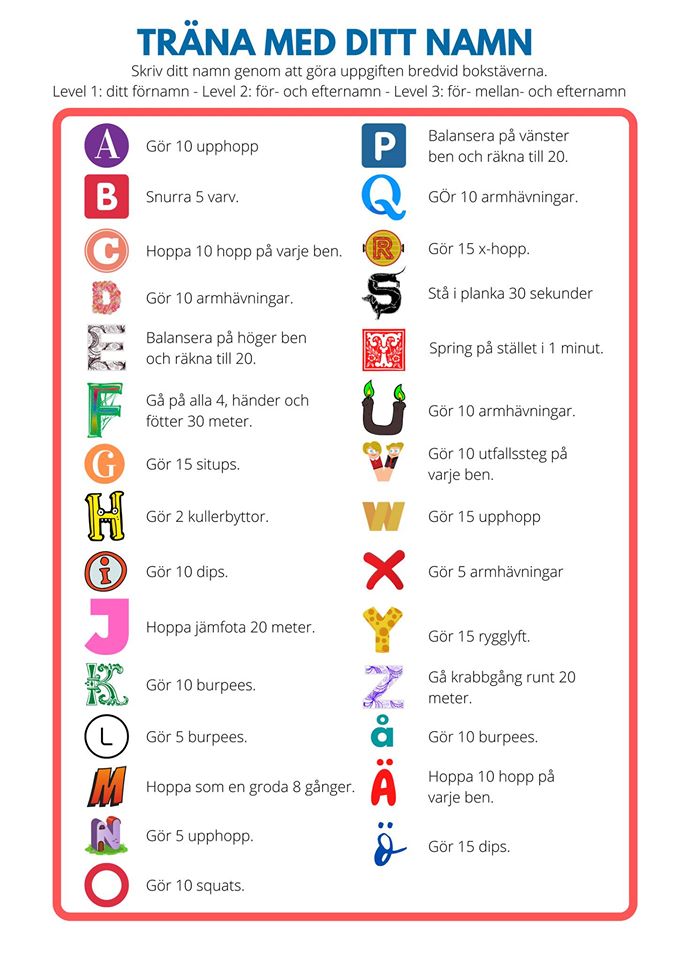 Förutom själva filmen där övningarna visas finns en utskriftsbar PDF som kan tas med på träningen.